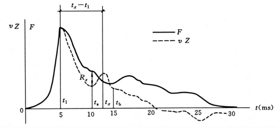 Rx——缺陷以上部位土阻力的估计值,k N,等于缺陷反射波起始点的力F减去速度与波阻抗乘积v Z,取值方法如图9-23所示。