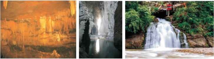 岩溶洞穴是碳酸盐岩或其他可溶性岩类地层经溶蚀作用而形成的复杂空间体系。洞内的鹅管、钟乳石、石笋、石柱、石幔、石旗、石花、石葡萄等洞穴堆积物,及洞内的古人类、古生物、古文化遗迹等,构成了重要的岩溶洞穴景观(图7-31)。