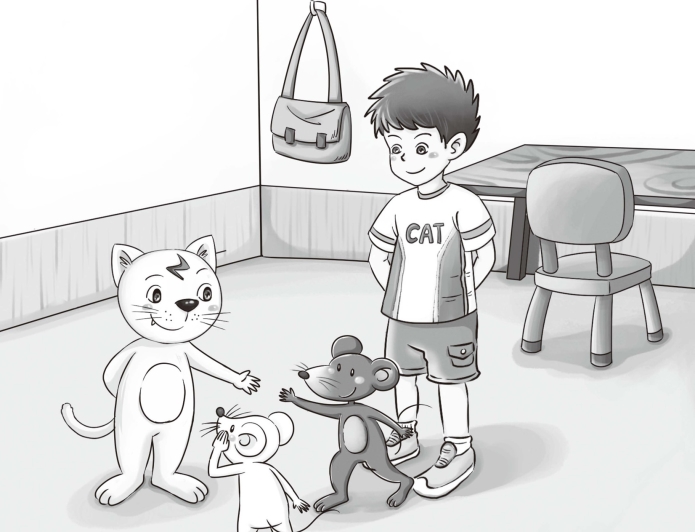 黑老鼠和白老鼠从书包里跳出来。白老鼠嘻嘻笑着说:“郝帅大哥,我们玩点什么?”
