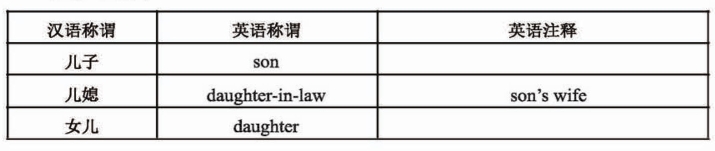 从上面两个译例可以看出,英语亲属称谓简单、笼统,而汉语亲属称谓详细、具体。英语亲属称谓和汉语亲属称谓分属两个不同的系统——类分式(Classificatory)和叙述式(Descriptive)。