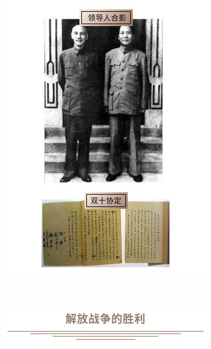 1945年8月,中国人民迎来了抗日战争的胜利。中国共产党根据全国人民和平建国的迫切愿望,同国民党统治集团在重庆进行和平谈判,努力避免内战,试图通过和平的方式实现中国的社会改革。1945年10月10日国共双方签订了《双十协定》,1946年1月10日签订了《停战协定》。