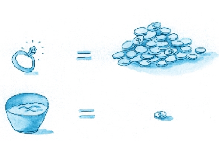 “使用价值”很大的东西,却可能没有什么“交换价值”;“交换价值”很大的东西呢,有时候却只有很小的“使用价值”。比如,“水”有很强的“使用价值”,但很多时候却分文不值;而“钻石”几乎没有“使用价值”,却常常费用高昂。
