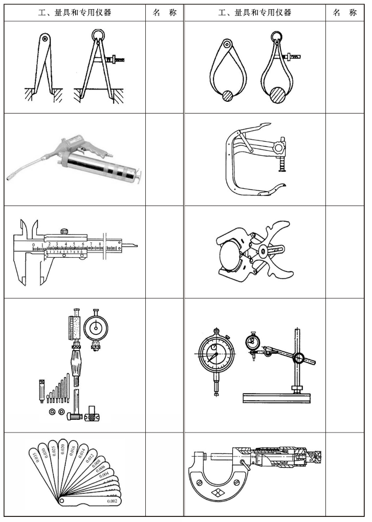 表2.1.1 汽车维修常用工、量具的认识和使用
