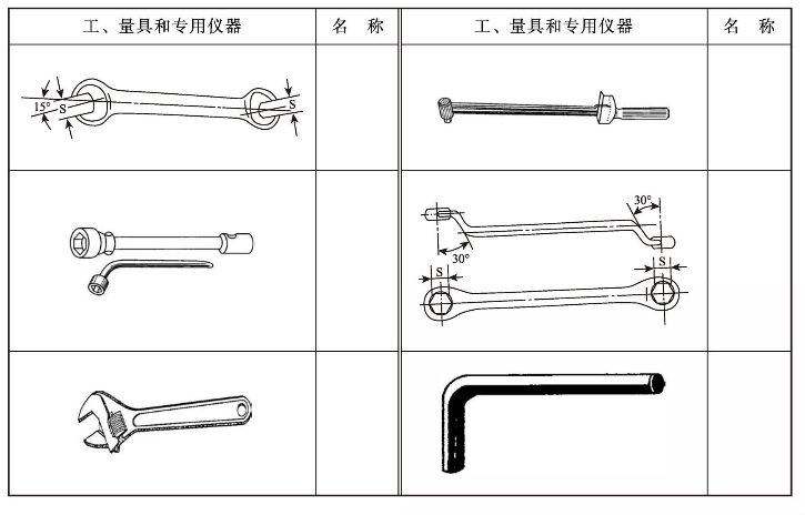 (2)梅花扳手。梅花扳手两端是花环式的,孔壁一般是12边形。梅花扳手与开口扳手的用途相似,可将螺栓和螺母头部套住,扭转力矩大,工作可靠,不易滑脱,携带方便,如图2.1.2所示。使用时,扳动30°后,即可换位再套,适用于狭窄场合下操作。与开口扳手相比,梅花扳手强度高,使用时不易滑脱,但套上、取下不方便。梅花扳手用45号钢或40号铬钢锻造,并经热处理。其规格以闭口尺寸S(mm)来表示,如8~10、12~14等。梅花扳手通常是成套装备,有八件一套、十件一套等。