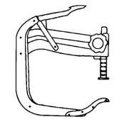 气门弹簧卸钳用于装卸气门弹簧,如图2.1.19所示。使用时,将钳口收缩到最小位置,插入气门弹簧座下,然后旋转手柄。左手掌向前压牢,使钳口贴紧弹簧座,装卸好气门锁(销)片后,反方向旋转气门弹簧装卸手柄,取出装卸钳。