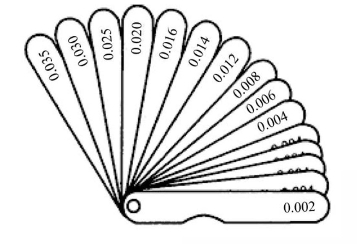 在汽车维修中,厚薄规常用来测量零件之间的配合间隙,如气门间隙、曲轴轴向间隙等。