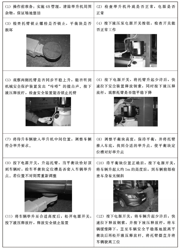 操作前的准备——举升机空载试验——举升车辆——降下车辆