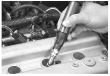 (4)安装时,先用套筒将火花塞对准螺孔,用手轻轻拧入,拧到约螺纹全长的1/2后,再用加力杠杆紧固。若拧动时手感不畅,应退出检查是否对正螺口或螺纹中有无夹带杂质,切不可盲目加力紧固,以免损伤螺孔,殃及缸盖,特别是铝合金缸盖。