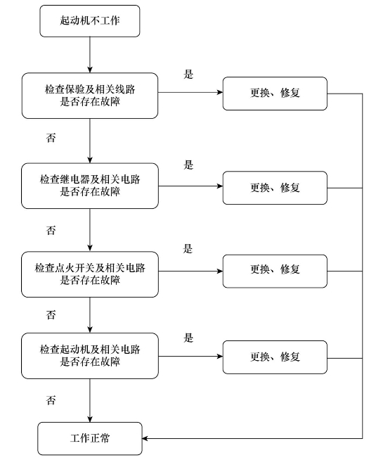 起动机不工作的故障检测流程,如图5.2.4所示。
