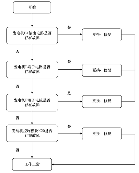 发电机充电指示灯常亮的故障检修流程,如图5.3.10所示。