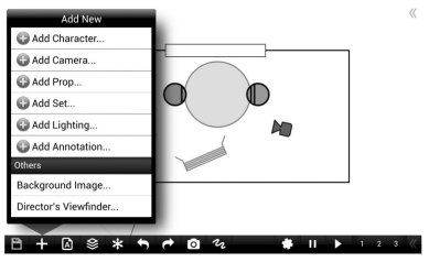 如图2-2、图2-3所示,我们可以利用这款App创建简单的场景,还可以给这个场景添加人物、道具、灯光和机位。这些草图绘制起来十分方便,而且一目了然,可以提高整个团队的工作效率。