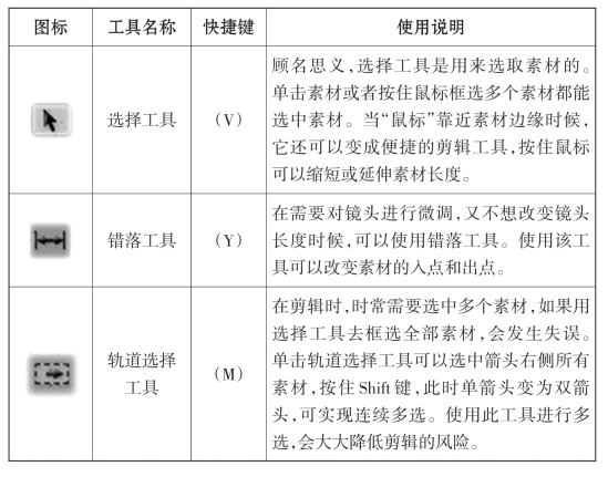 表3-2 常用剪辑工具使用方法