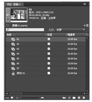 项目窗口的作用是导入和管理素材(图3-2)。