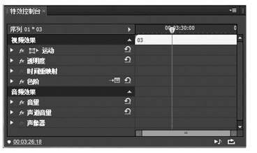 特效控制台是用来设置和调整素材特效的属性和参数的(图3-8)。