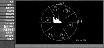 矢量示波器的任务是监测彩色信息,具体来讲,是监测颜色的色饱和度和色调。在矢量示波器测试图的中心是无色的,离中心越近,颜色越不饱和(越接近白色);离中心越远,颜色就越饱和(颜色较浓)。