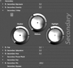 将Colorista前面的小三角打开,看到它的下拉界面(图3-18):一级调色(primary)、二级调色(secondary)和最后的主调色(master)。