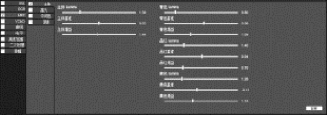 在参数设置面板中,可以进行整体和局部调色(二次处理)。局部调色可对图像中多个色彩调色,使用十分方便。参数设置面板有不同的调色方法按钮,它们从上至下依次是HSL、RGB、CMY、YCbCr、“曲线”(Curves)、“电平”(Levels)、“亮度范围”(Luma Range)、“附属”(Secondary)和“限幅”(Limiting)。