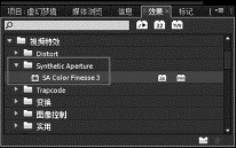 ColorFinesse 3是Synthetic Ap-erture公司出品的专业色彩校正系统。它可以作为插件安装在Pre-miere和After Effects中,该系统以32位色彩空间为基础,可以在HSL,RGB,CMY和YCbCr色彩空间对颜色进行校正。在Adobe Premiere Pro CS6中安装Color Finesse 3插件后,可以在Adobe Premiere Pro CS6的特效窗口“视频特效”下看到SyntheticAperture特效组,单击打开该特效组可以看到SA Color Fi-nesse 3特效,如图3-24所示。
