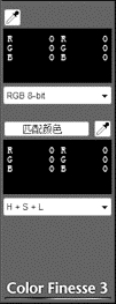 Color Finesse 3的色彩匹配支持HSL校色方式,使用色彩信息面板,提取源图像的色彩信息和匹配目标色彩(Match color target color)信息,然后从下拉菜单中选择要匹配的通道,单击“匹配颜色”(Match Color)按钮,源图像的色彩就自动匹配到目标色彩。Color Fi-nesse 3将自动选择“H+S+L”(色调+饱和+亮度)方式来进行色彩匹配,这种方式的匹配是真正意义上的色彩匹配。如果要对单个或多个通道匹配,应该选择相应的通道。如匹配的是绿色就要选择G通道,其他以此类推。