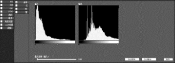 在参数设定窗口的“亮度范围”面板里,可以对亮度范围进行定义,“亮度范围”面板中显示的直方图代表图像的亮度分布情况,曲线围成的区域代表图像暗部、中值和亮部的范围。通过调节柄,可以调节各个区域的大小,从而改变图像中暗部、中值、亮部的比例。想查看图像的亮度范围,可打开图像显示窗口的“亮度范围”面板,这时窗口中显示的是黑白图像,其中,黑色部分是图像的暗部,灰色是中调值,白色是图像中的亮部。如图3-81、图3-82所示的工作界面中的“亮度范围”面板和“亮度范围”显示窗口。