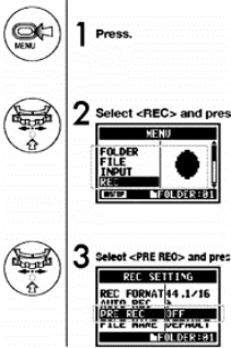 H4n的预先录音功能支持最多2秒的预先录入,以避免丢失重要的信息。在实际拍摄时,听到开始指令后按下录音键,也不会丢失台词。四声道录音模式最多只支持1秒的提前录入(图4-5)。