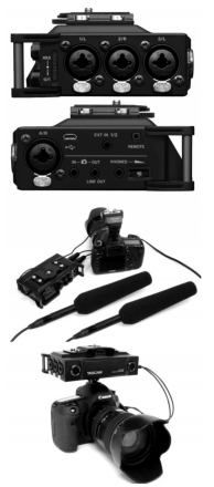 还有一种录音方式与摄影器材无关,用录音机独立记录声音。可以使用小型录音机或更专业的录音机,如ZOOM4、TASCAM DR-40或788等。这种方式只要与画面打板同步即可,但会增加剧组人员,后期也会增加声画同步环节。