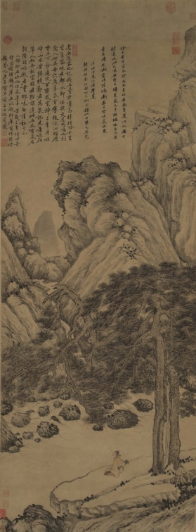 《庐山高》,明代,沈周作,纸本设色,纵193.8厘米,横98.1厘米,现藏于台北故宫博物院。