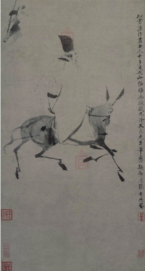 在戏剧理论方面,他主张“本色”,即戏剧语言应当符合人物的身份,应当使用口语和俗语,以保证人物的真实性,反对典雅的骈语,过度的修饰,这些看法都是很有见地的。他的杂剧《四声猿》曾得到汤显祖等人的称赞,在戏曲史上也占有一席之地。徐渭死后6年,“公安派”领袖袁宏道到绍兴访问朋友陶望龄,在陶氏书架上抽取了一本刻印很粗糙的书,“读未数首,不觉惊跃”,发现了这位天才。袁、陶二位各自写了一篇《徐文长传》,这位被遗忘的艺术奇人才得以扬名后世。这样的境遇和凡·高有着诸多的相似,因此徐渭又被誉为“东方的凡·高”。徐渭自称为“畸人”,他在70岁生日时,作诗说:“桃花大水滨,茅屋老畸人。”自己编了一部年谱也叫《畸谱》。何谓“畸人”?《庄子·大宗师》云:“畸人者,畸于人而侔于天。”畸人也就是奇人。他们乖异于人伦、却合于自然天道。在世人眼里,他或许应该被当作一个疯子为人所遗忘。若论徐渭生平境遇之坎坷和艺术成就之奇绝,在明代文坛上确实数不出第二个。