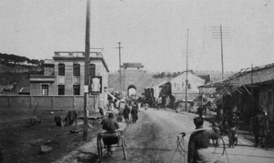 残照下的仪凤门。苦难的市民为了生活,艰难地奋斗着,仪凤门见证了南京人的坚韧、顽强。