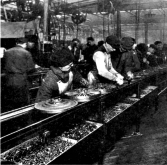 1913年4月1日,我们第一次试验了一条装配线,我们用它来试验装配飞轮磁石电机。首先在一个小范围内实验所有想法,我们将会采用任何一种一旦被我们发现的更好的方法,但我们必须能绝对肯定新方法将比旧方法好,只有这样才能进行大的变革。