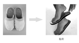 下面选一个最常见的物品——鞋。鞋最重要的部分就是鞋帮鞋面,没有鞋帮鞋面就不能走路。抽取鞋帮鞋面,那就只剩下一个鞋底了。要求创新一个无面鞋。如图(图4-9)所示,这里的关键是脚板与鞋底的连接。
