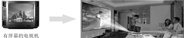 这样的无屏幕电视机——投影电视机已经实现。现在的投影电视机体积很小,投出的画面很大。用创新原理检核,可以为电视机的发展找到一个方向——投影电视机(图4-4)。