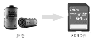 胶卷照相机是用胶卷存储图像。胶卷就是照相机最重要最不可缺少的部分。去掉胶卷还能照相,就要创造无胶卷照相机。也就是要用新的存储技术代替胶卷。这种先进的存储技术,当属电子数字存储器,构成数码相机。用SDHC卡代替了胶卷(图4-11)。