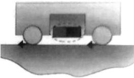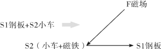 氧乙炔切割小车在钢板平面上运行不允许有滑动,也就是要求有足够大的摩擦力。要增大摩擦力,就要增大拖车的重量和体积,这又受到限制,不允许。如何在不增加体积的前提下,增加摩擦力呢?别的先不想,首先应用物场概念——两物一场。这里有两个物,车和钢板,要补充一个场,以增大小车车轮对钢板的摩擦力。先画物场模型。补充一个什么场(机械场—热场—化学场—电场—磁场,)可以增大车轮对钢板的摩擦力?显然磁场是最合适的,因为车下是钢板,能产生吸力。这里要补充的是磁场(图5-46),磁铁体积小也是一个优点。当小车工作时,一块磁铁从车上与钢板接触,吸住钢板,增大车轮对钢板的压力,也就增大了摩擦力。两物一场,补充一场,解决了问题(图5-47)。