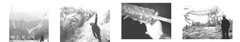 2008年春,我国南方发生雪灾,由于没有防护措施,致使高压输电线路导线结冰。出现高压输电线路断线倒塔,造成大面积停电,后果严重,造成重大经济损失。图5-53就是当时的情况。