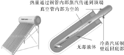 2)热管太阳能(图5-35)。在太阳能真空集热管中装有一根热管,将集热管中聚集的太阳热能快速传送到水箱。