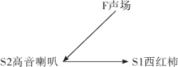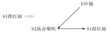 例5:研究的对象是西红柿,是一物,补物补场,建立一个完整物场,以提高西红柿的产量。要考虑阳光雨露肥料之外的非一般方法,如给予一种什么激励,能促使西红柿增产。当然,激励源从声光电磁几方面进行选择。美国人发现用高音喇叭对西红柿放噪声(图5-28),使西红柿产量大大提高。这就是补物补场构成一个完整物场。其物场模型如图5-29所示。