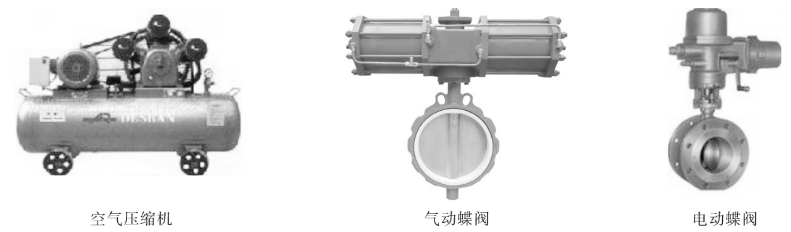气动蝶阀用气缸推动阀门转动,以打开或关闭阀门,如图6-13的右图所示。