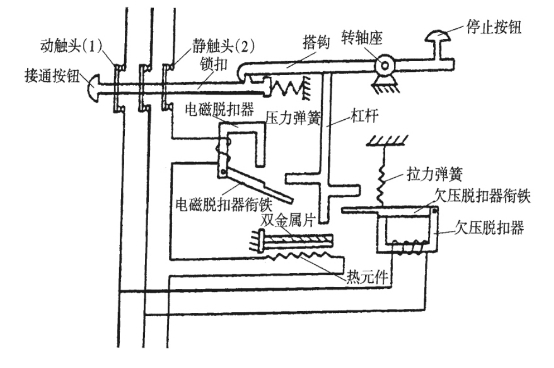 例4:三相电路断路器。主要功能是在发生短路、过载、欠压时切断电路,以对其他电器实施及时保护。