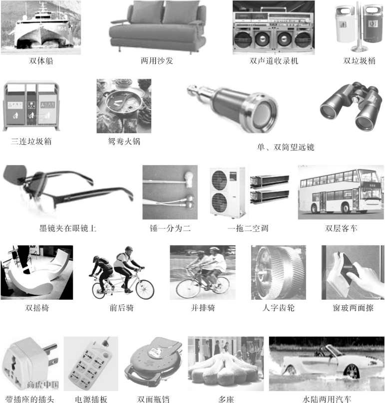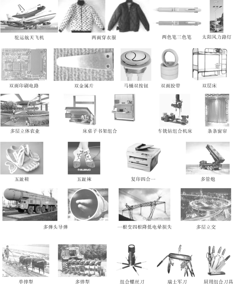 下面列举了许多单一系统向双系统、多系统进化发展的案例(图6-47)。除了增强、扩大功能、改善性能之外,就是使系统具有多种功能。希望琢磨每一张照片的含义,从这些案例中受到启发,学会将单一系统向双系统或多系统发展的组合方法。
