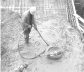 例2:在混凝土浇灌过程中,为了消除气泡、缝隙,使混凝土更加密实,一边浇灌,一边用振动棒或振荡器进行捣实(图6-72)。