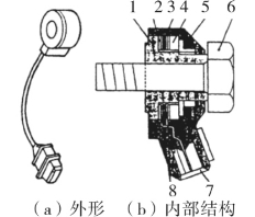 汽车发动机上安装有压电式爆震传感器。当发动机发生爆震时,爆震传感器中的压电陶瓷片受到振动而传出爆震电信号。