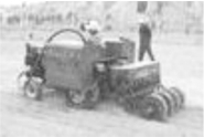 一农机制造厂,只有一块场地用来测试农机产品的性能(图10-4)。一次,工厂接到许多不同地区国家需要农机产品的订单。这些国家的土壤不同,测试产品的性能,就需要不同软硬的土壤。厂长说:“我们需要140种土壤不同的场地。”这显然是办不到的。现实的问题是,如何在现有的这块场地里,变换出具有多种不同软硬性质的土壤来。这是一个难题。可以用前面物场矛盾标准解解题模式解决这个问题。这个问题物场的问题模型是只有一个物,要构成一个完整物场,需要补充一物一场,这就是标准解。这一物一场究竟是什么,正是这个难题的具体解答。根据这个难题的要求,要靠这一物一场改变土壤的硬度。根据经验,这一物一场应该是一种物理效应或物理现象。下面我们再应用物理效应和现象检核表解决这个问题。首先想象一下如何改变土壤的硬度。抓起一把有一定湿度的松散土壤,稍微用手一捏,土壤成形,密度增加;再用力捏,密度进一步提高。所以,改变土壤硬度要有外力作用在土壤上,作用力越大,土壤的密度就越高,土壤的硬度就越高;反之,硬度就很低。土壤是分布的,这个力似乎是无形的、强度是可变化的,是什么东西能给土壤施加这种力呢?我们到物理效应检核表中去查找这个东西。按照解题模式,首先要确定这个难题要求的功能是改变土壤的硬度,也就是改变土壤的密度;从特殊到一般,到物理效应功能表中查找相对应的功能,找到相应的功能为“F23改变物体空间性质”;再到物理效应对应表这个功能下属的物理效应中,选择适当的物理效应。下属的物理效应一共有25个,但是,联系到能产生力、而且强度是可变化的力,那就只有“磁场”这个最适当的选择。选择到了磁场,就完成了从特殊到一般的第一个过程。第二个过程是从一般到特殊,把磁场转换成能改变土壤硬度的具体方案。磁场能对铁磁物质产生吸力,但是土壤不是铁磁物质,为了使磁场能对土壤产生力,于是就把铁磁颗粒(铁粉)拌和在土壤中,并在土壤下埋设电磁铁,给电磁铁线圈通入交流电流,使电磁铁形成磁场,磁场磁化土壤中的铁磁颗粒,使铁粉之间产生吸引力;这种吸引力的大小,就表现了土壤硬度的高低。改变电磁铁线圈中的电流,改变磁场强弱,就改变了吸引力的大小,也就是改变了土壤的硬度。磁场越强,吸引力就越大。加了磁性粉的土壤混合物,在强磁场中可以像花岗岩那样坚硬;同样的混合物在弱磁场中也会像沙子一样松软。于是,改变线圈磁场强度,就可以获得不同软硬性质的土壤。就在原来的这一块场地里,进行着不同土质的农机试验。应用物理效应,解决了这样一个难题。