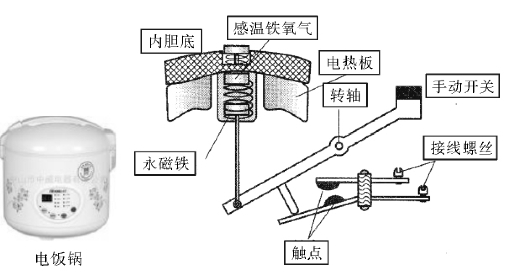 展览会上演示了一把电焊枪。当它过热的时候,能自动关闭。观众议论纷纷。有的说有温度测量装置,有的说有传感器,还有继电器。其实这些都没有,和上面的电饭锅自动关断类似,用了一个居里点温度为电焊枪过热温度的铁氧体,装在能感受过热温度的地方。一到过热温度,铁氧体就失去磁性,在弹簧力的作用下,与磁铁脱开,同时也将电源断开。
