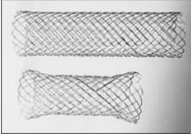 记忆合金支架放入喉气管狭窄部位迅速扩张,明显地改善呼吸困难。当心血管堵塞,由血管送入血管支架到堵塞处,支架扩张,使血管畅通(图10-18、图10-19)。