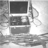 如图所示,垂直于路面,相隔2米远,在路面下5厘米处,平行埋设两条压电电缆。电缆的电极连接到测试仪或计算机上。当一辆车驶过以后,从传感器的输出,可以获得车辆如下的信息:轴数、轴距、车速、载重、判断车型,判断是否超重,如果是闯红灯,立即进行拍照,等等。