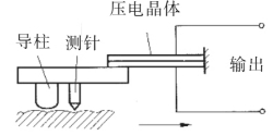 如图10-48,测针在粗糙表面移动,由于表面起伏不平而上下运动。压电晶体也随之变形,晶体表面产生电荷,由引线输出与测针上下运动成正比的电信号,放大显示粗糙程度。