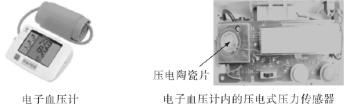 电子血压计中一个密封膜盒装有压电式压力传感器。膜盒与袖带由管子连通。给袖带打气,膜盒中也同样产生压力,压电片受压产生电荷,经放大、转换、数显压力的数值。
