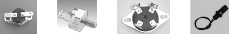 用双金属片做成的电路温控开关(电器产品),得到广泛应用。小至家用热水袋、电饭锅、日光灯起辉器等,大至各种工业设备以及汽车中需要温度控制的地方,大量使用双金属片电路温控开关。这种温控开关已是成熟的系列产品,如图10-11所列。