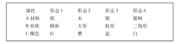 把研究对象的属性列为纵行,对每一个属性列举众多的形态,列成横行,于是就形成一个属性形态矩阵表,如表11-1包装盒属性-形态矩阵表所示。